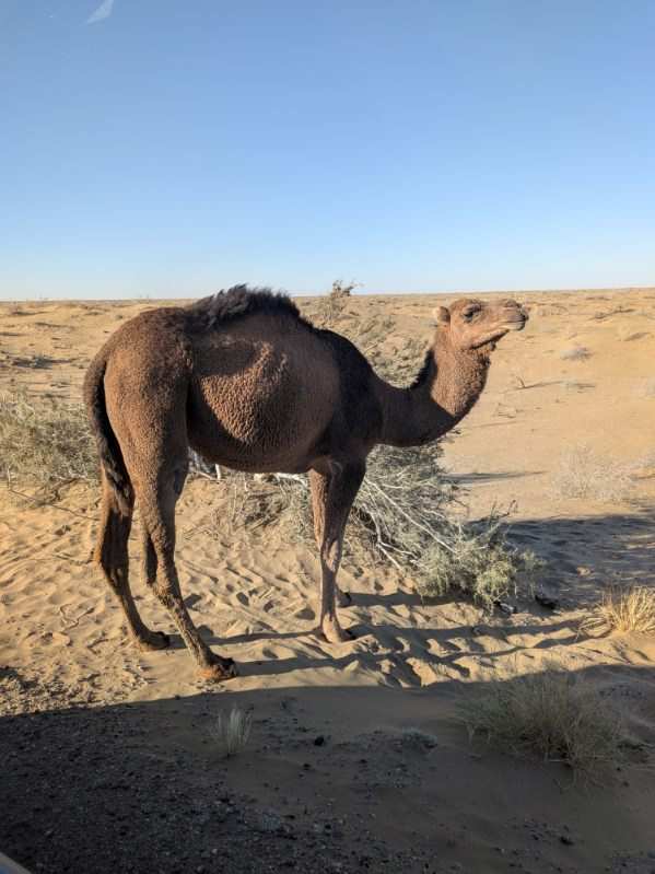 早朝弁当を受取り5時に出発、8時に国境へ到着するも9時からと(現地ガイドの情報収集不足!)。寒風の中ブーブー文句を言いながら1時間ボヤッと待ち、9時にパスポートチェックを受け、スーツケースを引っ張り3分位歩き出国審査を受けて(ドローンを持ってるか聞かれる)、1人1ドル払ってオンボロのマイクロバスで3分位でトルクメニスタン側に到着、まず鼻の穴にもほぼ入ってない屁にもならない様なPCR検査を受け結果と領収書が出きるまで20分位待機、ここでトルクメニスタンのガイドと合流、全員陰性で入国審査と手荷物検査。高い台にやっとこさスーツケースを乗せ、全て開けて麻薬など持ってないか中をチェックされ、ようやくトルクメニスタンに入国。両国の出入国に1時間40分程度、事前に言われていたよりもスムーズに通過できたような・・・。