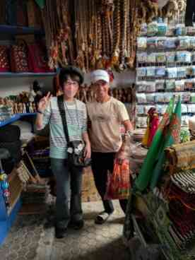 ㊷バザールの民芸品店にて店長と ㊸後方は観覧車 ㊹独立記念塔