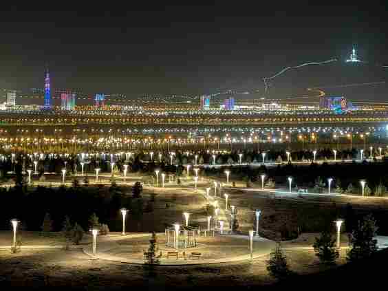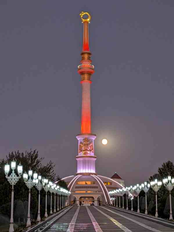 ㊼後方はライトアップされた結婚式場 ㊽金ぴかのアシガバード市内